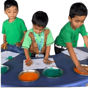 Spoorti Central School ( Nursery) group of children include Exercise of Practical Life that not only helps them to perform daily life activities independently but also gain control of movement - sorting, pouring, folding, rolling etc. Sensorial activities allow children to see, touch and feel various physical properties of matter.
